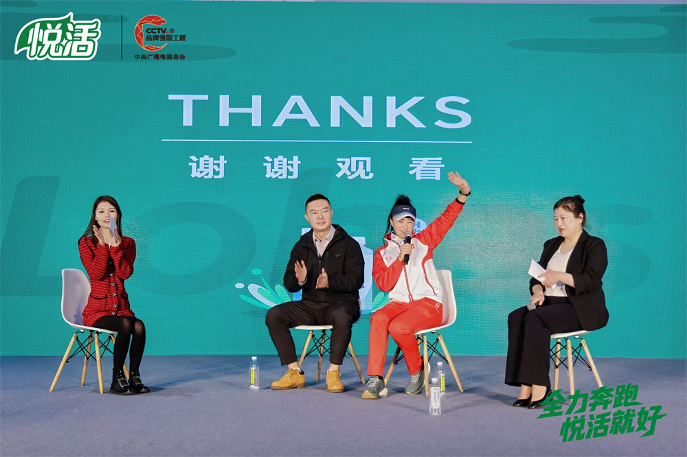 孙英杰(中国女子马拉松双项纪录保持者)现场分享 “孙氏丹田跑步法”,倡导以丹田为核心的驱动跑法,替代传统腿部驱动模式,实现省力、高效、低损伤奔跑,结合悦活科学补水方案,助力跑者突破耐力极限。