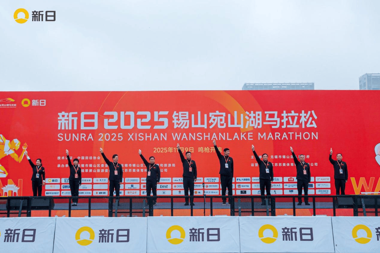 11月9日,2025锡山宛山湖马拉松在宛山湖畔活力开跑。作为连续多年深度合作的伙伴,新日今年以“独家总冠名”身份亮相,不仅见证了赛事的全面升级,更以全方位的保障和温暖的互动,陪伴每一位跑者奔赴梦想终点。