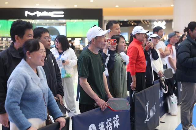 从下午两点开始,现场报名处就排起了长队。参赛者每16人一组,轮番上阵。每一次精彩的发球、截击,都引来围观市民的阵阵惊呼与掌声。紧张、欢笑、喝彩声交织,让商场中庭变身成为一座充满活力与激情的 “街头运动秀场”。